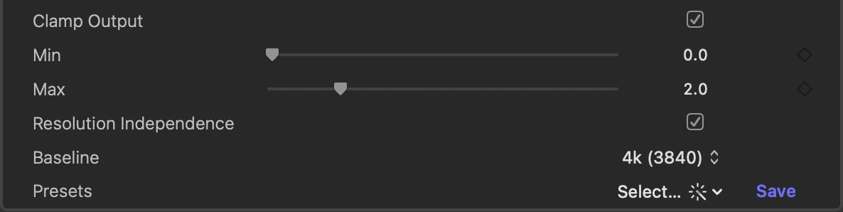 This parameter supports values between -1 and 100. Drag the left or right handles beyond the edges of the slider to pick values outside the range represented by the slider.