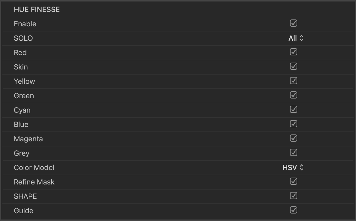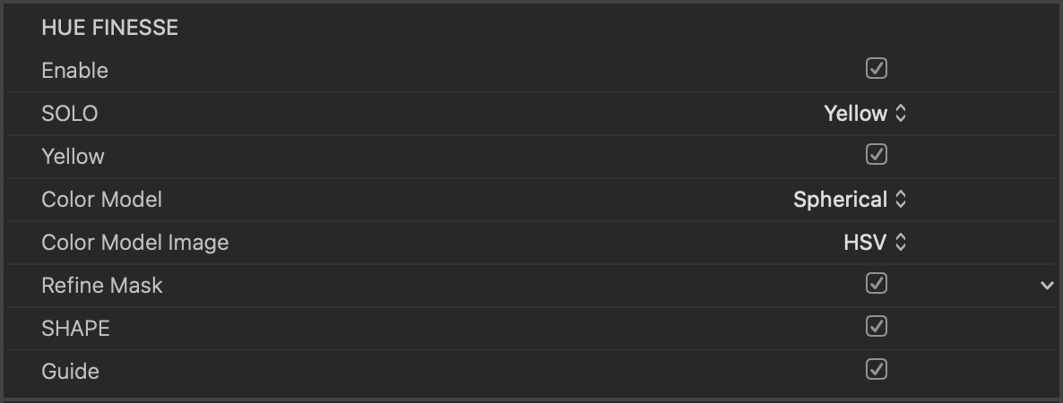 When enabled a second Color Model menu appears in the HUE FINESSE group - Color Model Image. This sets the model used for image processing while the existing Color Model menu continues to set the model used for the masks.